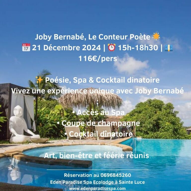 Nocturne étoilée & Cocktail dînatoire 📅 Date 21 Décembre 2024 ⏰ 15h à 18h30 💶 116€ par personne Laissez vous transporter par la poésie et le charme de Joby Bernabé,…