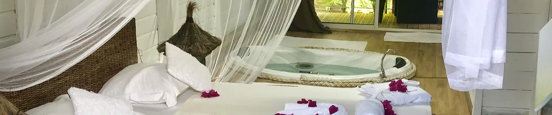 « Adam et Ève » séduit par son style créole et son lit Queen Size de 240 cm, offrant un confort luxueux.